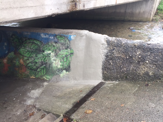 Slovenija, Škofja Loka, podhod pri ŠD Poden, sanacija počene škarpe in aktivnega vdora vode