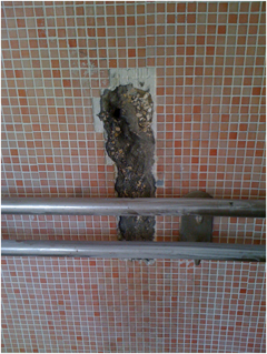 Impermeabilização negativa em paredes com saída de água com caudal activo.