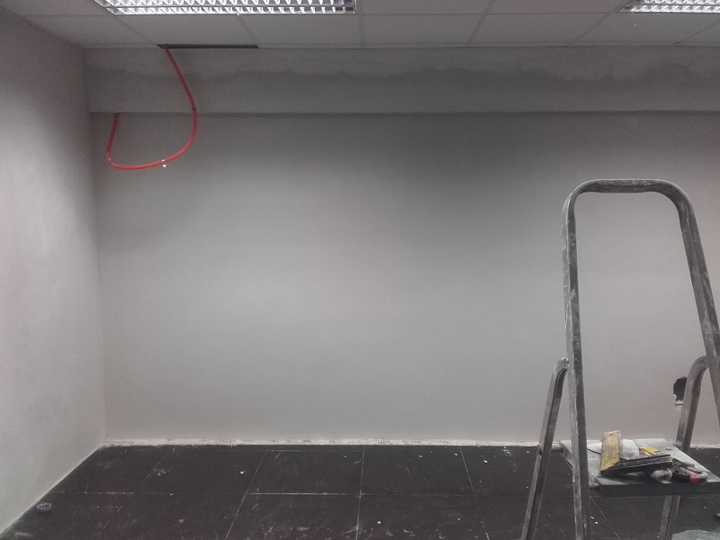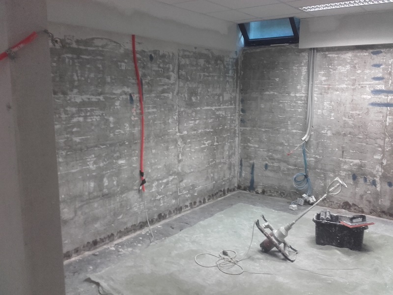 Iz sten so odstranili star omet in gips plošče, steno zbrusili in očistili, s Köster Crisin kremo naredili horizontalno bariero proti kapilarnemu dvigu vlage. Ko je bila narejena horizontalna bariera so preko naredili še tesnilni sistem s Köster Polysil TG 500 in Köster NB 1. Prav tako so rešili in pravilno zatesnili preboje, ki so bili dodaten vir zamakanja v objekt. Kjer je bilo potrebno so steno izravnali in lokalno popravili z izdelkoma Köster KB-Fix 5 in Köster Betomor Multi A. Ko je bila stena sanirana, so nanesli Köster sanirni omet in za fino zagladitev še Köster Fini omet. V prostorih, ki so bili obremenjeni s plesnijo pa so stene še dodatno prebarvali s Köster MF 1, mineralno barvo, katera preprečuje pojav in nastajanje plesni.