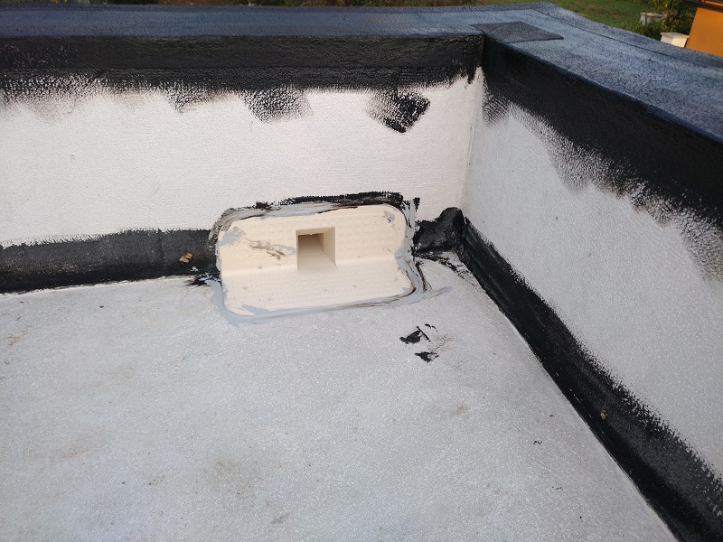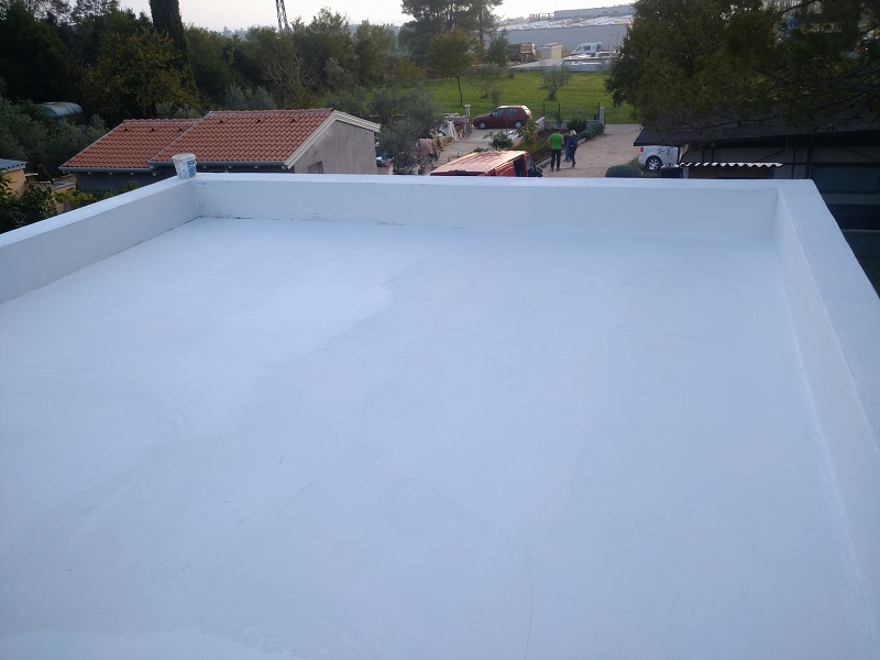 Tako je bila izvedena brezšivna, paropropustna in vodotesna hidroizolacija, ki zaradi svoje bele barve odbija velik del toplote in omogoča, da so spodnji prostori prijetno hladni.