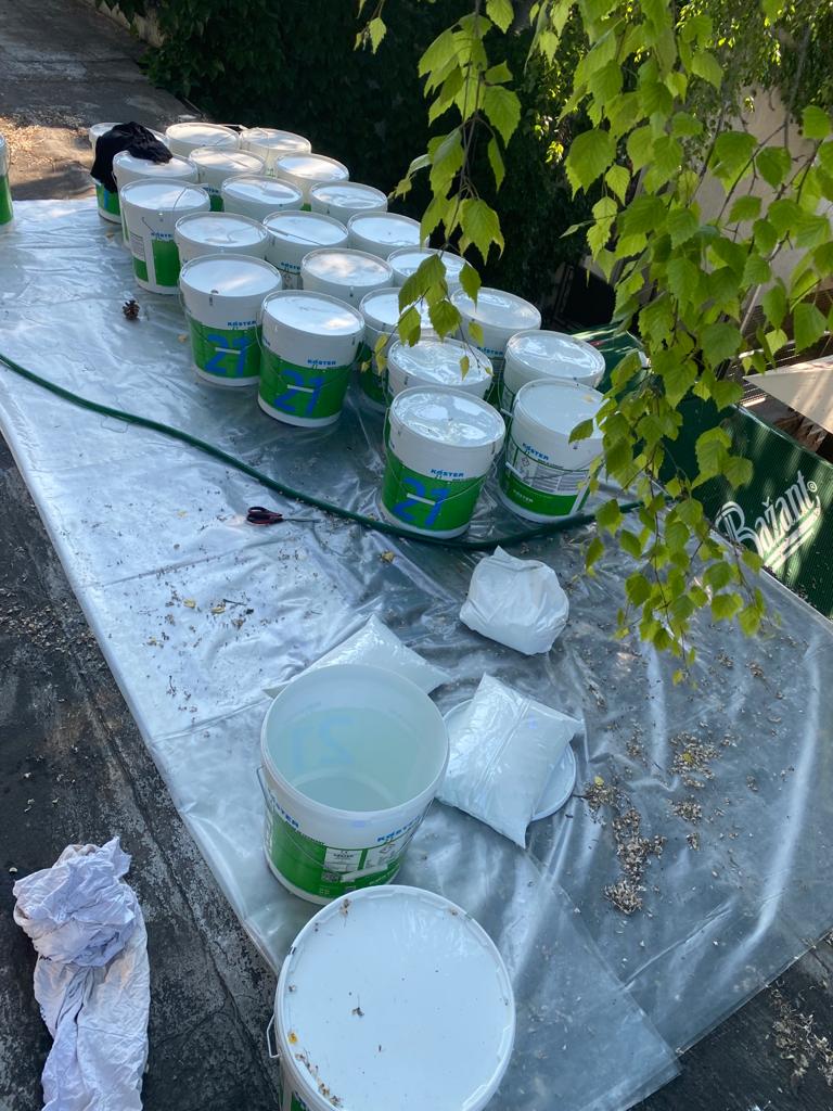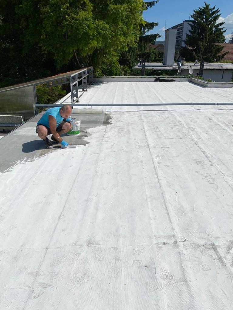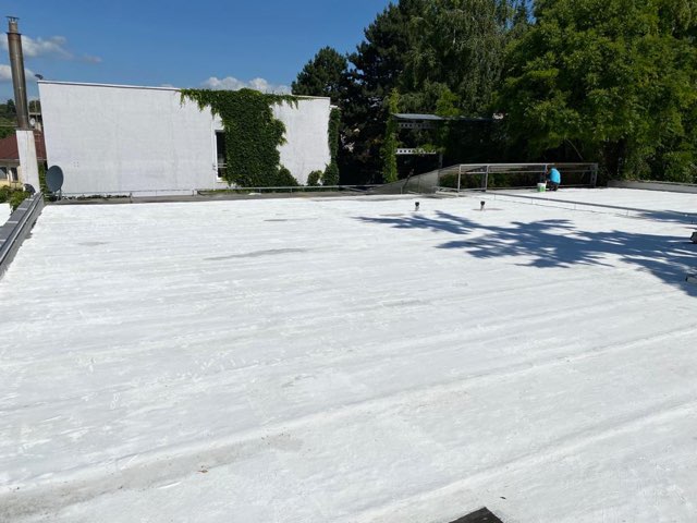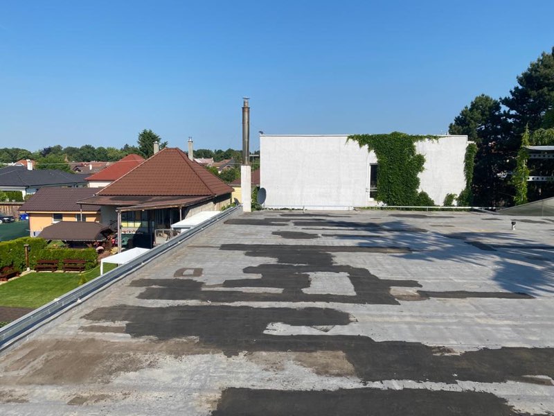 Pracovný postup: povrch strechy penziónu BATÁVYA v Topoľčanoch sa najskôr očistil tlakovou vodou (WAP-kou). Následne sa realizovali 2 nátery s hydroizolačnou stierkou KÖSTER 21. Medzi prvú a druhú vrstvu stierky sa vložila výstužná mriežka KÖSTER Glass Fiber Mash - odolná voči roztrhnutiu pre vystuženie hydroizolačných vrstiev. Na aplikáciu sa použila gumová stierka, s ktorou bola aplikácia veľmi jednoduchá.