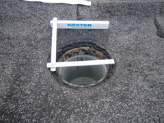 Der Abfluss wird freigelegt, die vorhandene Dachbahn angeraut.