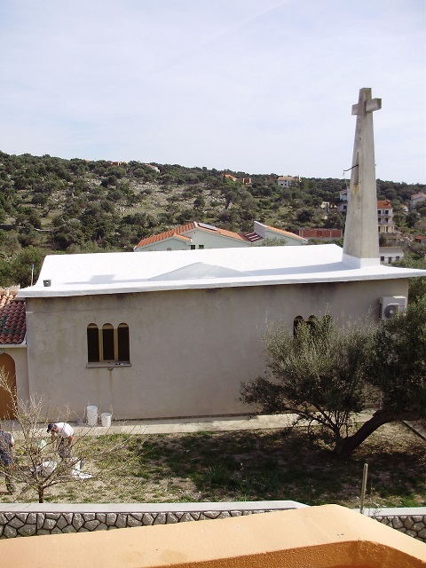 Hrvatska, otok Pag, Crkva, hidroizolacija krova